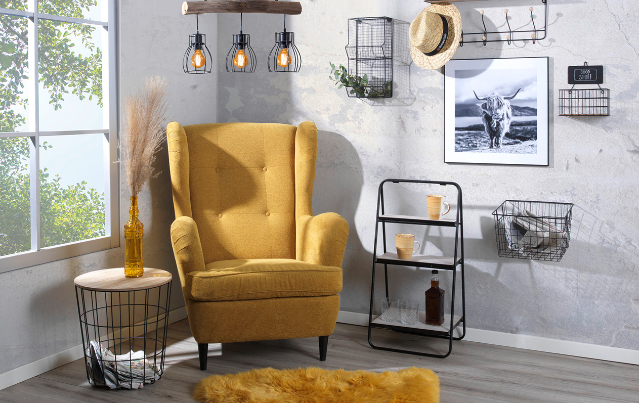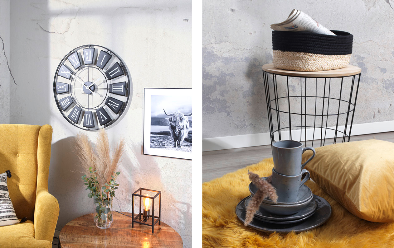 Kräftiges Senfgelb, markantes Schwarz und ein Hauch von Retro-Charme – unser Look Industrial Mustard vereint herbstliche Wärme mit modernem Industrial-Flair. Die satten Ocker- und Senftöne bringen Gemütlichkeit in Dein Zuhause, während schwarze Metallelemente für den perfekten Kontrast sorgen.