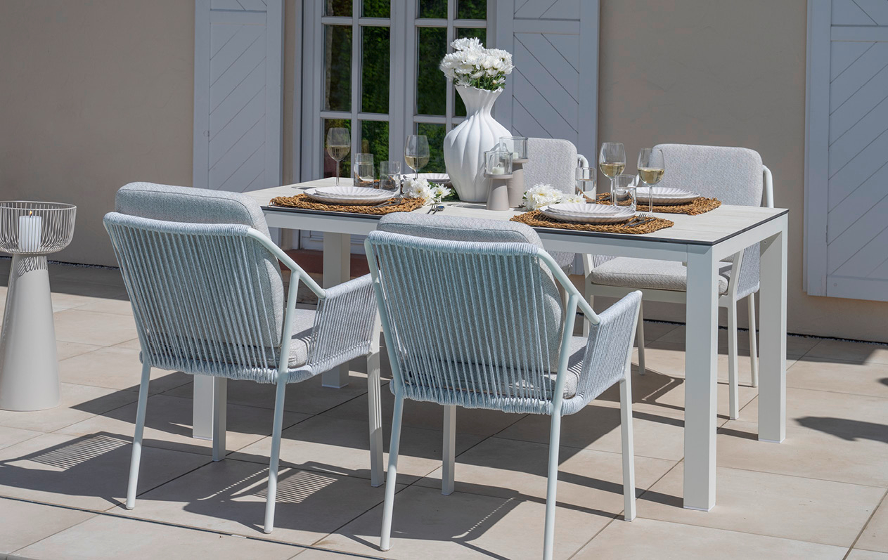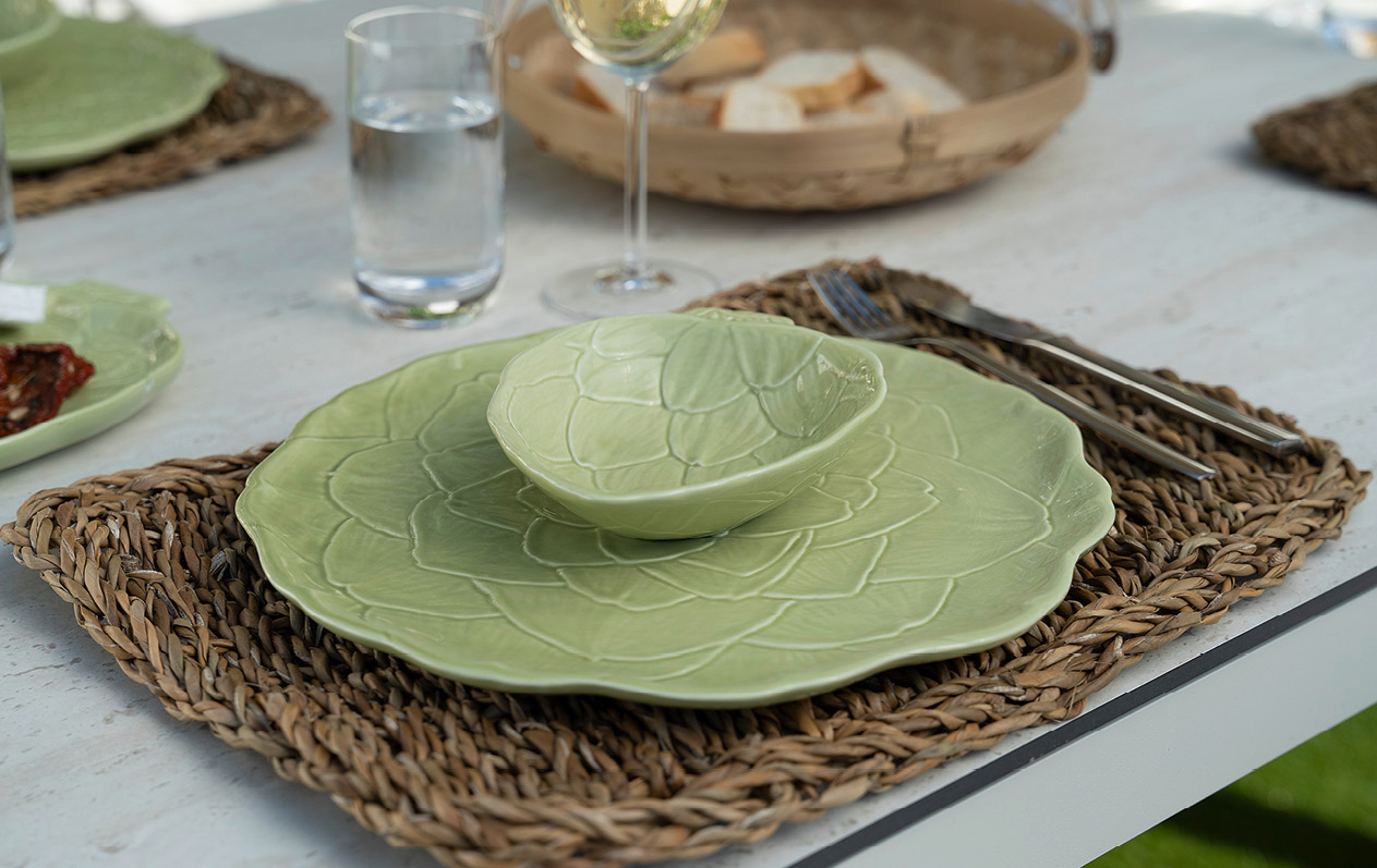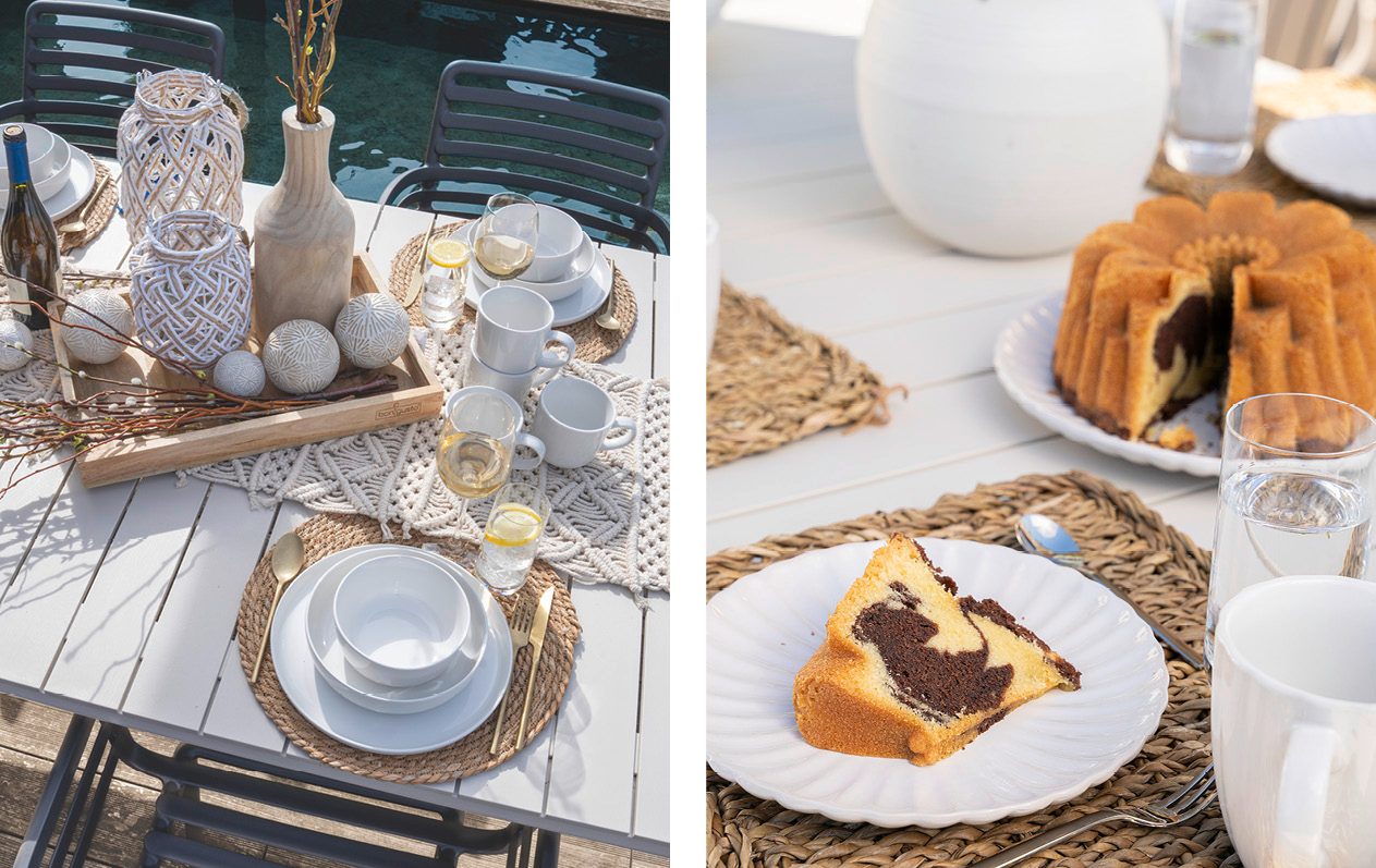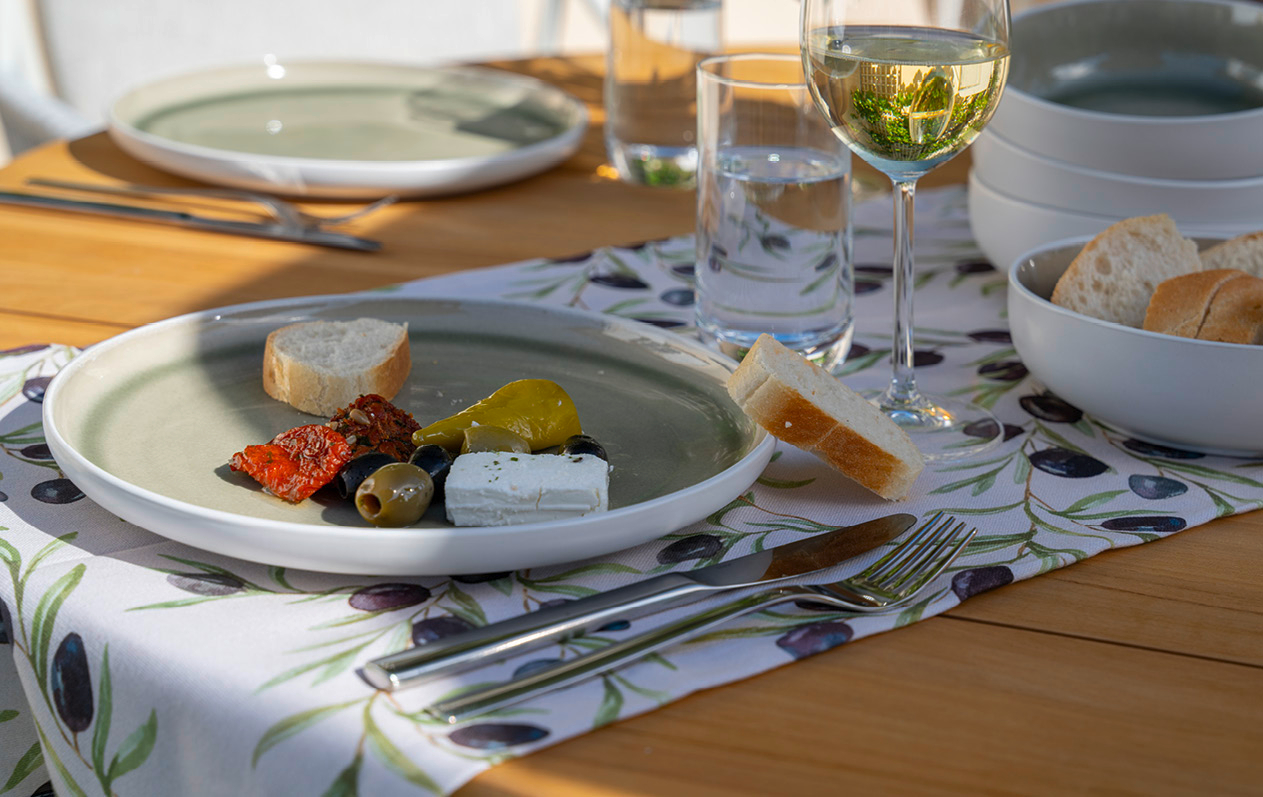 Falls Du mehr als weiß möchtest, bringt Dir Natural Delight mit mediterranen Prints wie Oliven und verschiedenen Grüntonen die Trendfarbe auf die Terrasse. Textilien und Geschirr spielen gekonnt zusammen und ergeben einen hübschen, natürlichen Look, der Dich direkt ans Mittelmeer katapultiert. Auch hier haben wir mit hellen oder dunklen Möbel, die perfekte Ergänzung für Deinen neuen Terrassen-Look.