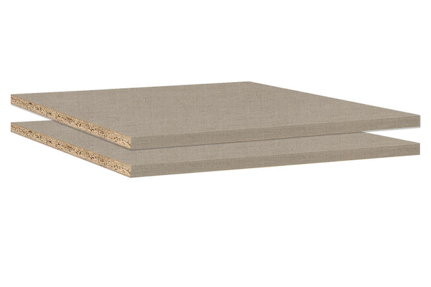 Die Oberflächen sind mit Texline Dekor überzogen. Dieses Material verleiht eine textilähnliche Optik und auch die Struktur erinnert an Stoff. Dank der neutralen, schlichten Farbe kombinieren Sie die Einlegeböden zu jedem beliebigen Schrank.